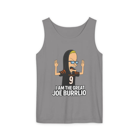 Do you have a minute to talk about Joe Burrow Unisex Garment-Dyed Tank Top - Sporty Casual Wear, Summer Essentials, Gift for Fans, Unique Graphic Tee, Trendy Athletic Apparel