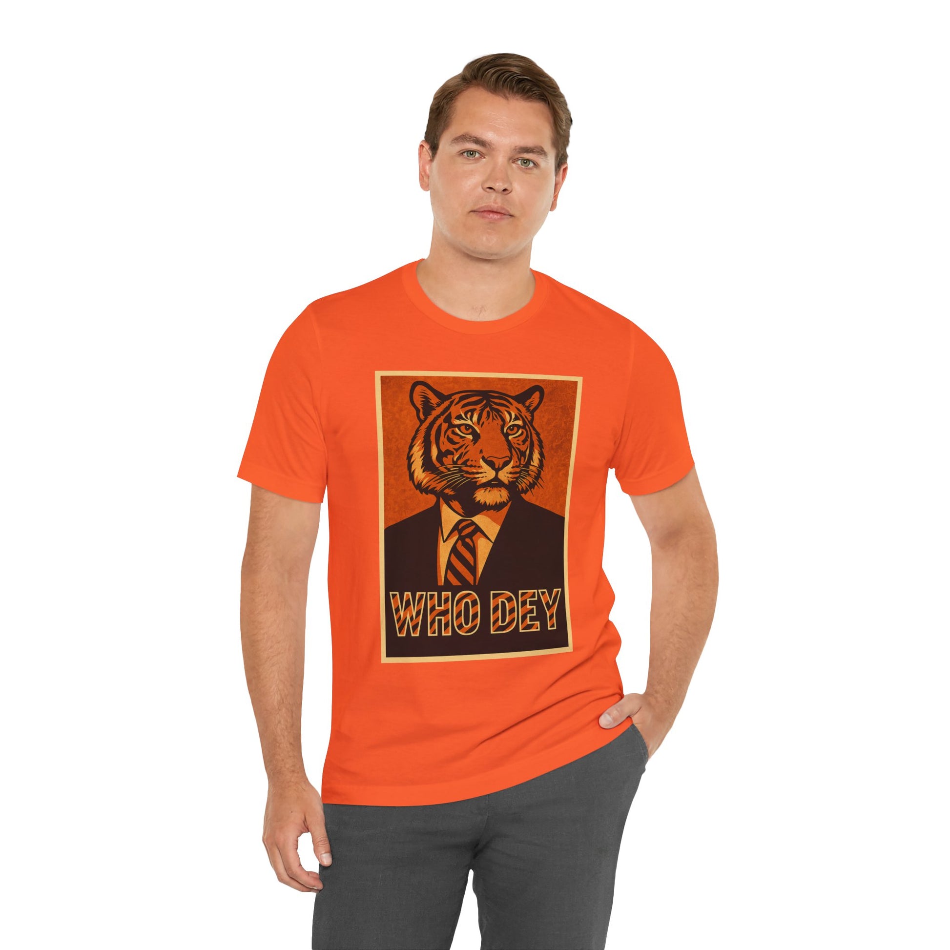 HopeTiger Graphic Tee for Game Day, Casual Wear, Statement Shirt, Unisex Orange Top, Gift for Sports Fans, Who Dey Tee