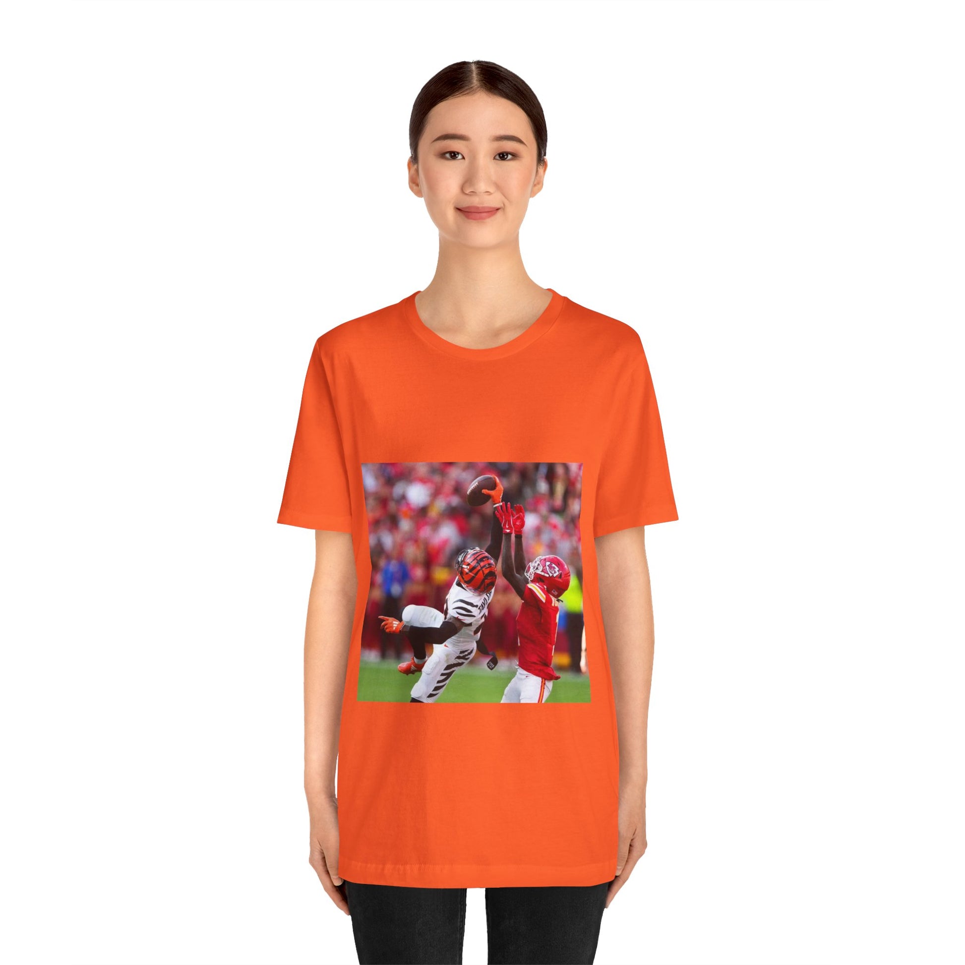 This classic unisex jersey short sleeve tee fits like a well-loved favorite. Soft cotton and quality print make users fall in love with it over and over again. These t-shirts have-ribbed knit collars to bolster shaping. The shoulders are tapered for a better fit over time. Dual side seams hold the garment's shape for longer.