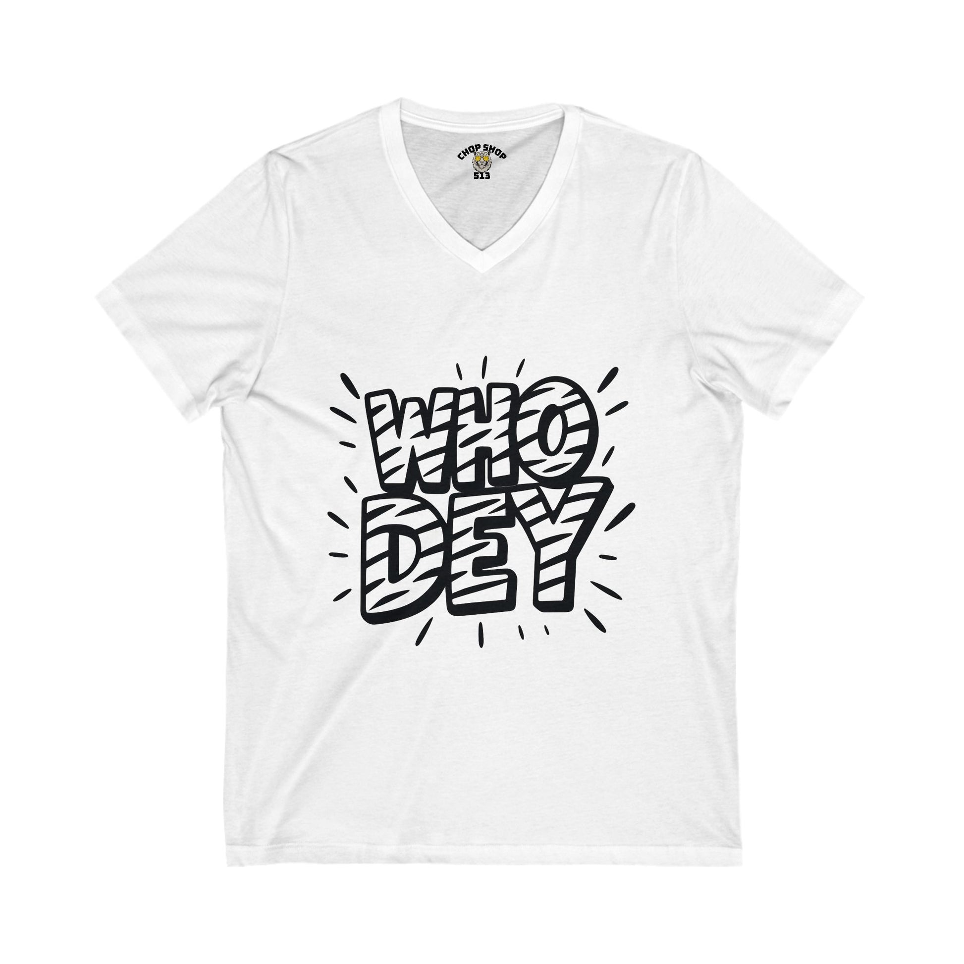 V-Neck Tee - White out "Who Dey"